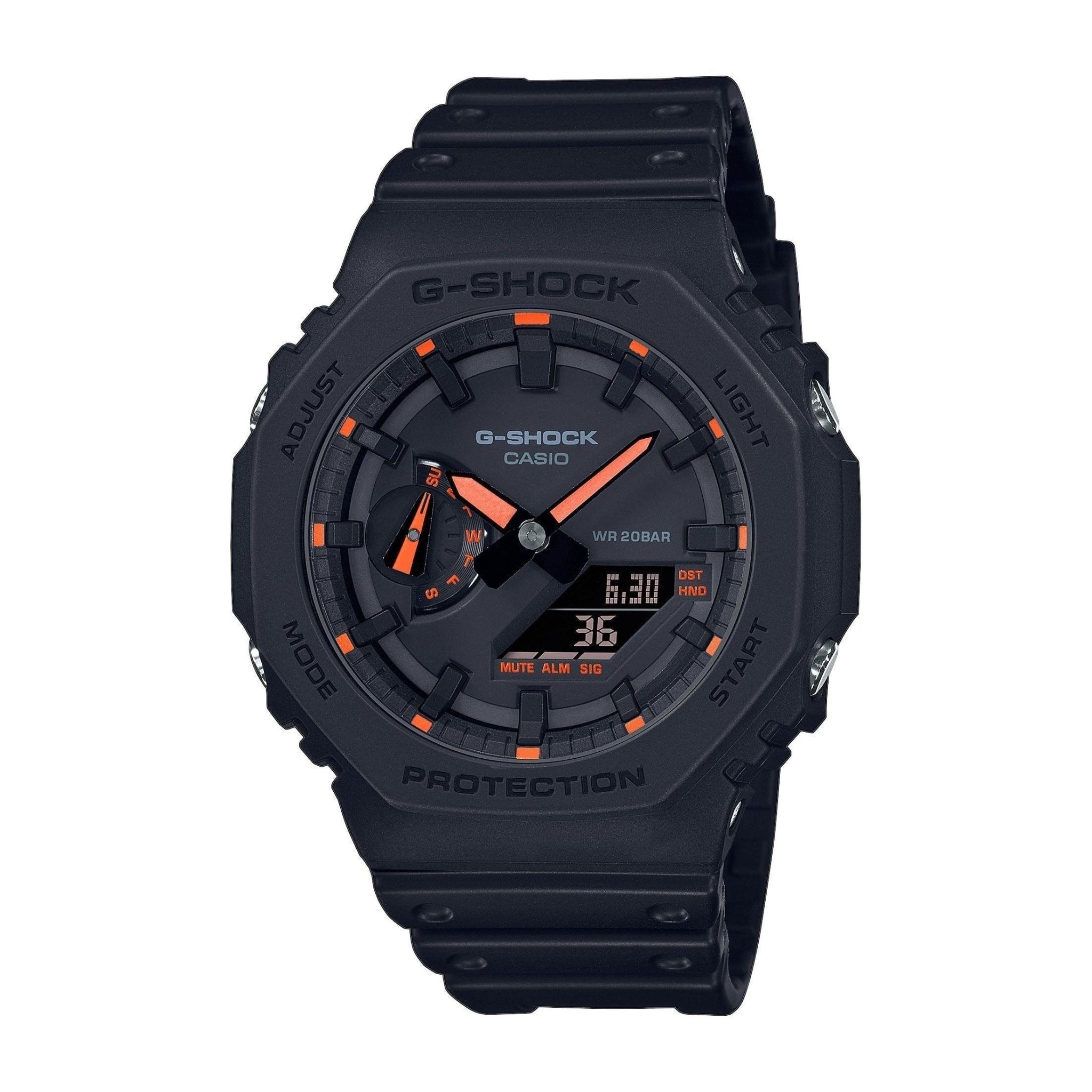 De Casio G-Shock Neon GA-2100-1A4ER combineert het iconische G-Shock ontwerp met een moderne en opvallende neonstijl. Dit horloge biedt de perfecte balans tussen functionaliteit en stijl, en is ontworpen voor zowel dagelijks gebruik als avontuurlijke activiteiten. Met een kastgrootte van 48.5 × 45.4 × 11.8 mm en een lichtgewicht van slechts 51 gram, biedt het een comfortabele en duurzame draagervaring. De kast en buitenrand zijn gemaakt van koolstof en hars, en de Carbon Core Guard-structuur zorgt voor uitstekende bescherming tegen schokken.
