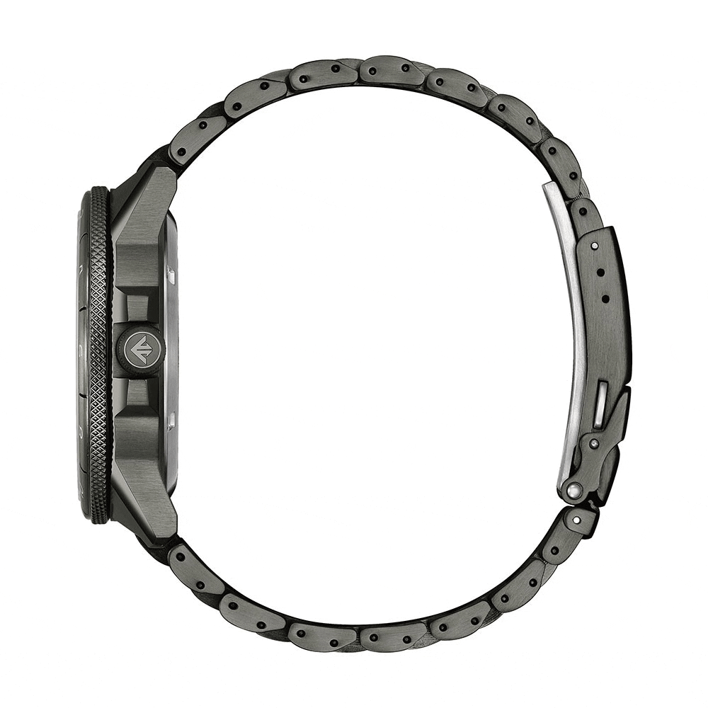 De Citizen Promaster Sky GMT NB6045-51H is een indrukwekkend horloge voor heren, ontworpen voor avonturiers en luchtvaartliefhebbers. Met een robuuste roestvrijstalen kast van 44.5 mm en een strak grijs design, biedt dit horloge zowel stijl als functionaliteit. De grijze wijzerplaat met lichtgevende wijzers zorgt ervoor dat de tijd altijd duidelijk afleesbaar is, zelfs in het donker.