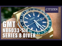 De Citizen Series 8 NB6033-51E is uitgerust met het mechanische kaliber 9054-24Z, dat zowel automatisch als handmatig opwindbaar is. Met een gangreserve van 42 uur en een nauwkeurigheid van ±15 seconden per maand biedt dit horloge betrouwbare prestaties. De kast en band zijn vervaardigd uit roestvrij staal met een goudkleurige afwerking, wat zorgt voor een luxe uitstraling. Het horloge heeft een diameter van 41 mm en een gewicht van 183 gram, wat zorgt voor een stevige en comfortabele pasvorm. De zwarte wijzerplaat met streepindexen wordt beschermd door antireflecterend saffierglas, en het horloge is waterbestendig tot 10 bar (100 meter), waardoor het geschikt is voor dagelijks gebruik en zwemmen.