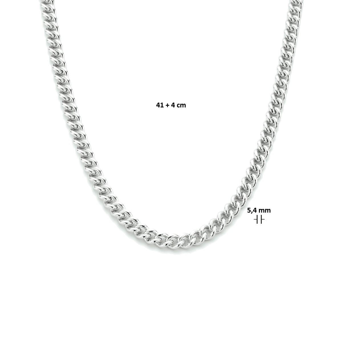 vDam Ketting Gourmette 5,4 Mm 41cm + 4 Cm Zilver Gerhodineerd 1334023 41cm
