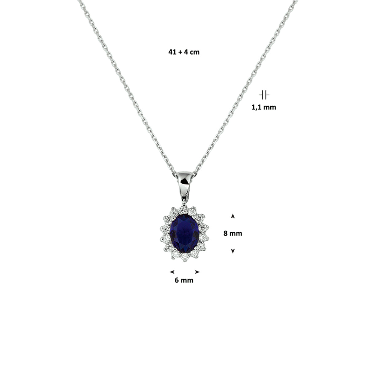vDam Ketting Zirkonia En Synth Saffier 41cm+4 Cm Zilver Gerhodineerd 1330137 41cm